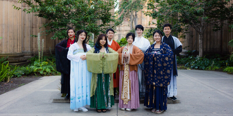 Our second shooting location was during Golden Hour at the Palace of Fine Arts—while more European in style, the grand carvings and pillars were beautiful photo opportunities. Unfortunately we were a bit late and didn't get the best golden hour lighting, but we did our best. We also took advantage of the sinking sun and strong winds to really show off our big sleeves and dramatic skirts, and we got quite a few C-Drama-like shots there. It did start getting cold, though, and the wind was hard to keep our eyes open in, so we didn't stay for too long before heading to karaoke, where we belted out a number of songs in English, Chinese, and even Korean!