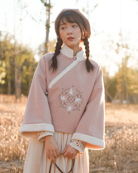 ▲Fashion with some modern Hanfu elements, in addition to the dazzling red, warm pink is also a good choice. Match it with a long skirt or a short skirt to make a deep impression.