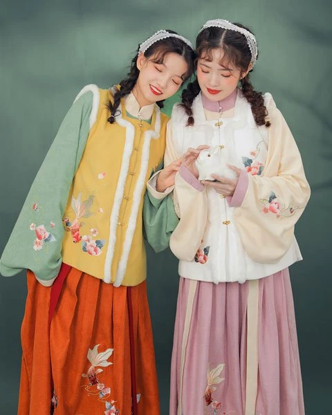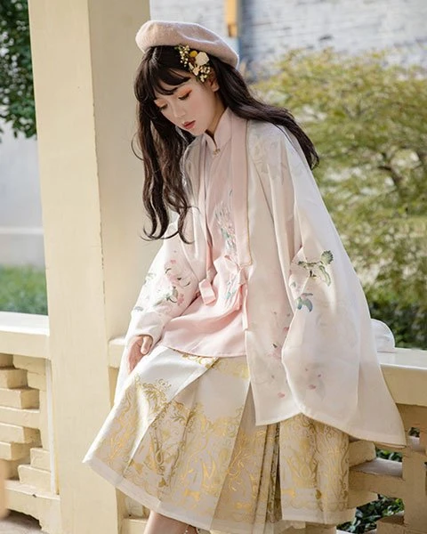 ▲ Wear a full set of Ao, but it is more convenient to go out with a short Mamian skirt. The whole set of colors is mainly light and warm, and the skirt is golden and bright.