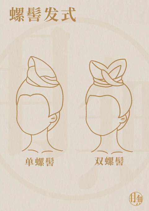 Luo Ji (螺髻, luó jì) was originally a form of hair bun on top of Buddha, but later the folk began to imitate this kind of hairstyle characteristics, because the shape looks similar to the conch shell, so the name Luo Ji. The combing method is to use a single strand of bun hair spiral coiled, because of its different forms, which can be divided into single Luo Ji (单螺髻) and double Luo Ji (双螺髻).