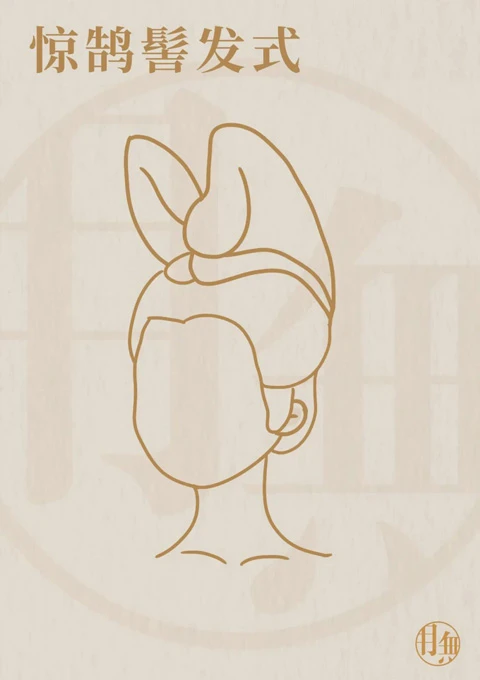 The Jing Hu Ji was developed from the bun of the Wei and Jin dynasties, was modeled after the wings of a bird, and was combed in the form of a bird's wings, as if the bird was frightened and ready to fly.
