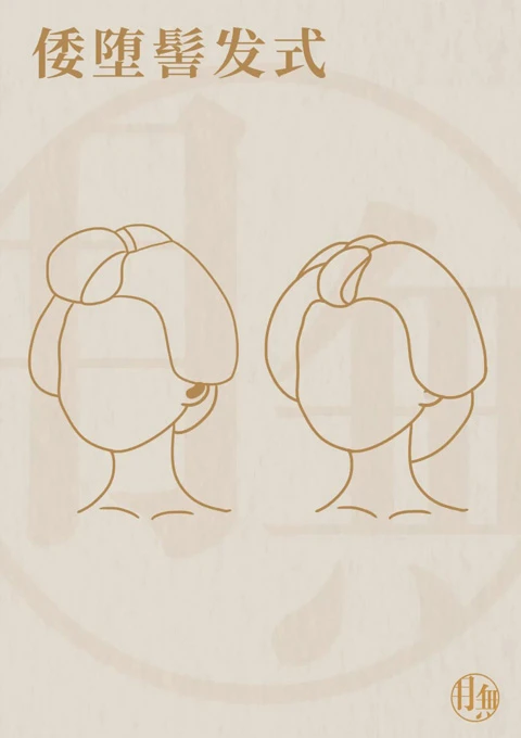 It is characterized by the shape of hair into a bun, on the side from the top of the head and hanging bun, the shape of the bun as if to fall down. In fact, this bun style appeared as early as the Han and Wei periods, and continues to evolve. With the development of popular, the top bun gradually shrunk, hair outward combing swept more and more fluffy exaggerated.