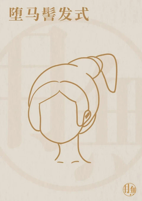 Duo Ma Ji (堕马髻, duò mǎ jì) is the most prominent bun in the Han Dynasty, the shape of the bun as if falling from a horse posture. In the Tianbao period, the Duo Ma Ji began to reappear and became popular again in the Zhengyuan period. In general, it was popular in the late Tang Dynasty for a long time.