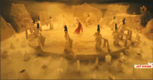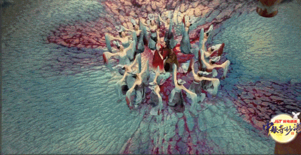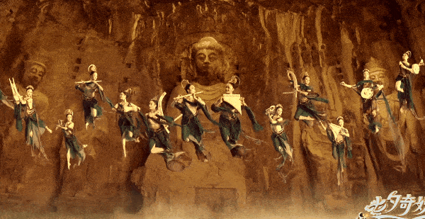 The Buddha in the background, is based the Longmen Grottoes Fengxian Temple field scenes, the construction of 3D models, and then enhanced with AR post, to achieve an exact replica. And the basic elements of the dance, detailed to each action of the actors, are the Longmen Grottoes stone carving content.