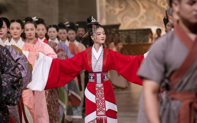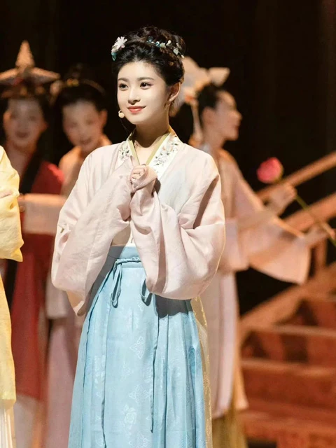 The beauty of Qin and Han clothing lies in the "short on the top and long on the bottom", wearing big sleeves clothes, long skirts, and walking reveals dignified and elegant beauty. In the program, Zhao Feiyan, a Han Dynasty dancer played by Zhang Yashu, danced on the stage with her skirt flying and her body light as a swallow, so beautiful!