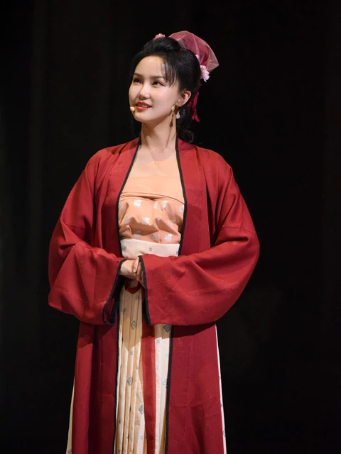 The Wang Zhaoyun played by Huang Ling, which is the time period when she meets Sushi and accompanies him. The stage restored the scene of "Xi Yuan Ya Ji Tu (西园雅集图)". Among the paintings, Su Shi, Su Ziyou, Huang Tingjian, Qin Guan, Mi Fu, and other literati drank wine and wrote poems, played the zither, and sang, and Wang Zhaoyun accompanied Su shi as a concubine. She can always make up for Su Shi when his words are offended, and she always warms up the stages and adjusts the atmosphere. After a few dialogues, it shows her wisdom.