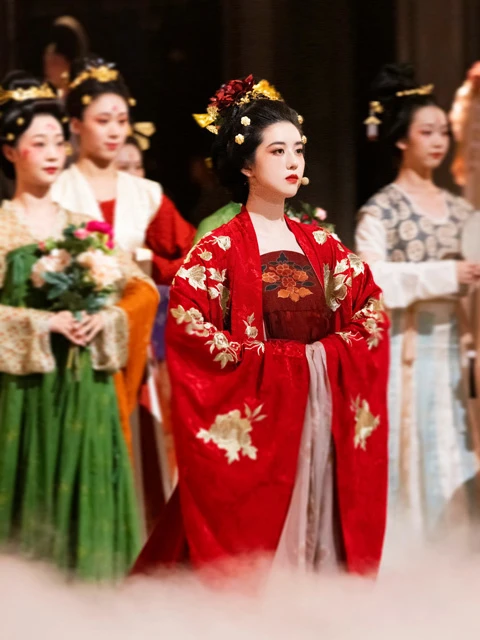 The clothing style of the Tang Dynasty was luxurious and elegant, the colors were bright, the patterns were meticulous and complicated, and they liked contrast color matches.