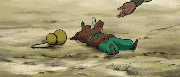 Such as the shot of the bull monster grabbing the boar monster and brushing the pot, the transformation of the shape and expression of the boar when it is rubbed, and the structure of the bull's arm and hand in motion are not less difficult. There is also the transformation of the wolf monster, which is a frame-by-frame hand painted ink style, the workload is very large.