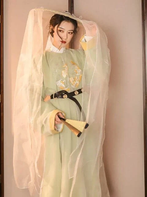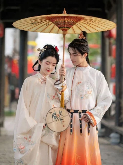 The colorways and Chinese elements of the clothes are all taken from the "Zuiqiusheng" fashion clothes in the game. The men's style is a round collar robe, while the women's style is a coat and Mamian skirt with the cloak, the style is simple and graceful.