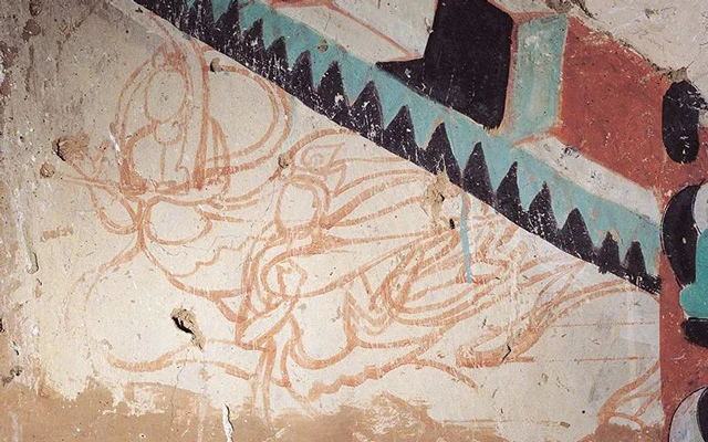 Since the Northern Wei Dynasty, the look of flying apsaras have gradually become more and more beautiful, with well-proportioned facial features and a much more slender figure. Although there is still no obvious femininity, the flying apsaras’ posture is more diverse, and the rudiment of grandeur can be seen the first time.