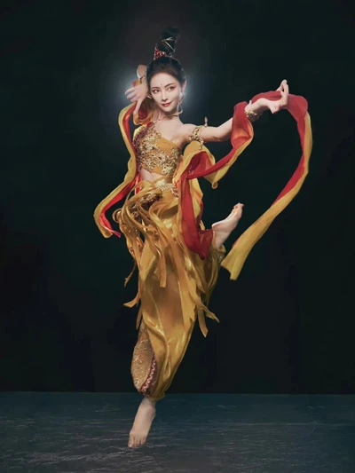 Among the thousands of Buddhas in Dunhuang's art, the flying apsaras have been shaped by history to become highly artistic. In the murals, they fly freely and without restraint, presenting a unique dance atmosphere and aesthetic effect.