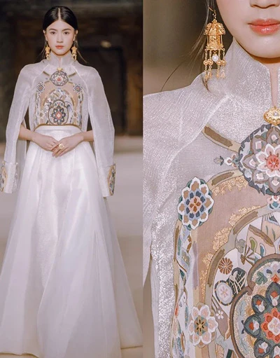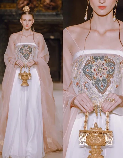As an excellent brand that tells the Chinese style to the world, Heaven Gaia is indispensable. The 2019 spring and summer series takes Dunhuang murals as the origin. Focusing on Buddhist elements such as Bodhisattva and flying apsaras in the murals, using Kesi, Suzhou embroidery, and other crafts, it presents the antique and thick Dunhuang culture on the elegant Western-style Chinese clothes, and emphasizes the introversion and implicitness of oriental beauty to the world with an elegant background color.