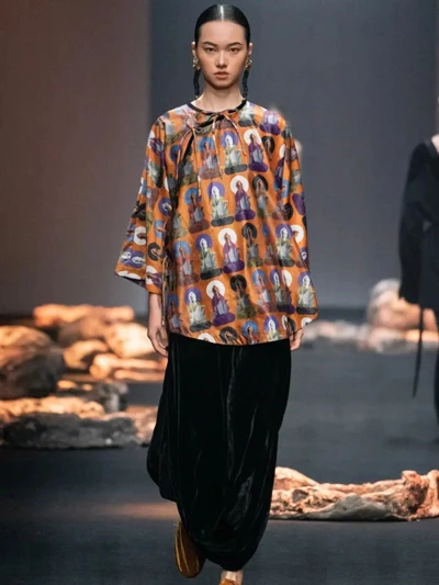 Designer brand TUYUE 2022 spring and summer series refines the elements from the Northern Dynasty of Mogao Grottoes in Dunhuang into the clothing, selects traditional mineral plant pigments for printing and dyeing, and the fabric is made old to imitate the steady and rich colors of the ancient murals after thousands of years weathering, and extends the beauty of Dunhuang with poetry.
