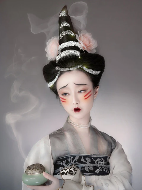 This kind of hairstyle was widely popular among the royal family and nobles, and was gradually rare in Kaiyuan period (713 AD - 741 AD) and Tianbao period (742 AD - 756 AD).