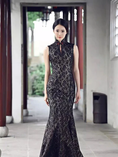 The collar can also be embroidered with lace and sewn with lace trim. Black lace trim used on cheongsam collars and lapels is a classical and modern combination that can make the cheongsam more dignified.