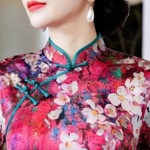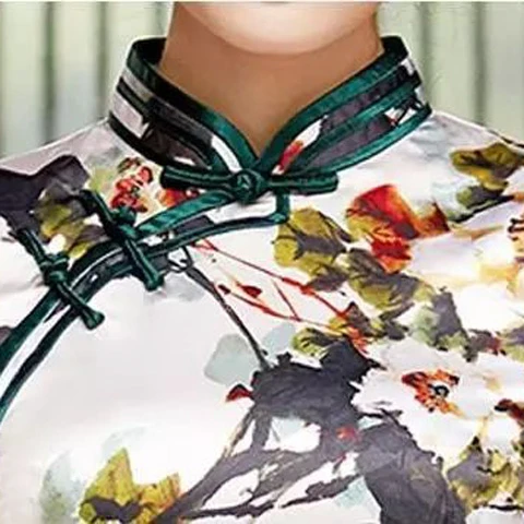 As one of the key elements of the composition of cheongsam, the collar shape has a very important influence on the style of cheongsam. Traditional cheongsam collar, often with a stand collar design, formed an elegant effect, with good effect in highlighting the lines of the female neck and body.