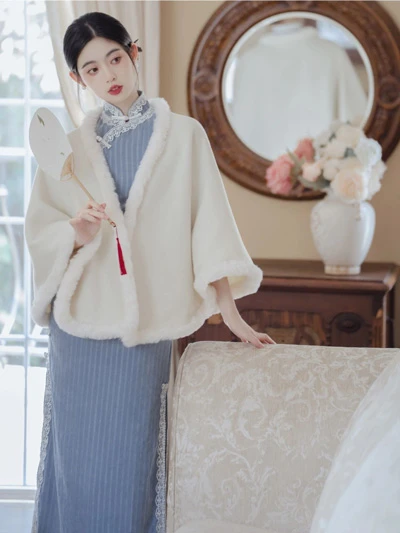 Lastly, a shawl can be worn in a variety of ways, allowing you to experiment with different styles and looks. It can be draped over the shoulders, wrapped around the waist, or worn as a headscarf. This versatility means that a shawl can be worn with a cheongsam for a variety of occasions, from formal events to casual outings. Overall, a shawl is a great accessory to pair with a cheongsam, adding both style and functionality to the outfit.
