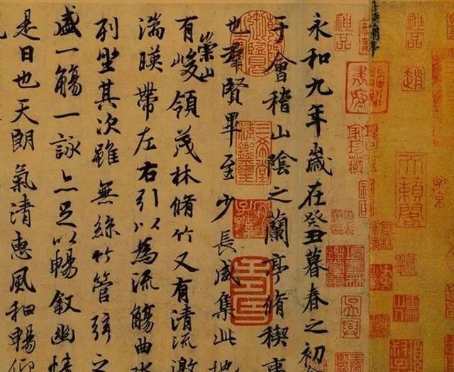 Wang Xizhi is a lover of spring excursions. On the day of the Shangsi Festival in the Jin dynasty Yonghe period, Wang Xizhi and his friends Xie An, Sun Chuo, and other forty-one people traveled to Mount Kuaiji, and wrote a travelogue, the famous semi-cursive script calligraphy work "Lantingji Xu".