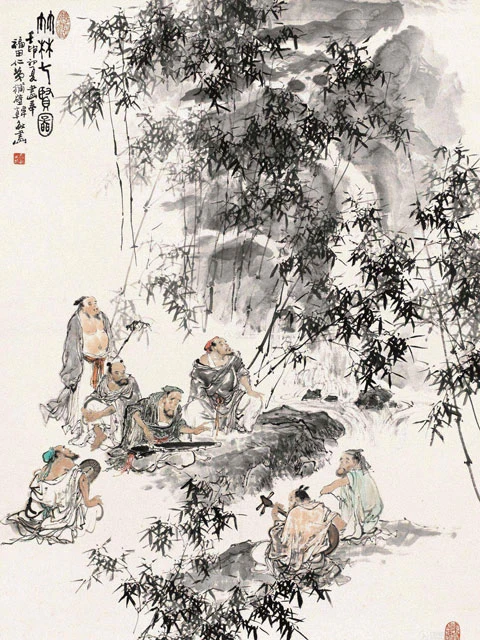 Bamboo Forest Seven Sages: Ji Kang (嵇康), Liu Ling (刘伶), Ruan Ji (阮籍), Ruan Xian (阮咸), Xiang Xiu (向秀), Wang Rong (王戎) and Shan Tao (山涛), are also lovers of spring excursions, like to drink and chat under the bamboo forest.