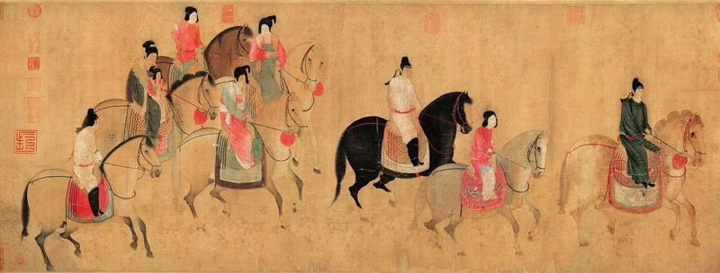 Horseback riding excursions were also very popular in the Tang Dynasty. And not only men, but also women participated in horseback riding excursions at that time. Zhang Xuan's "Lady Guoguo's Spring Outing" recorded the scene of Yang Guifei's third sister, Lady Guoguo, and her family members on a horseback spring tour.
