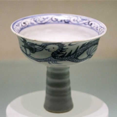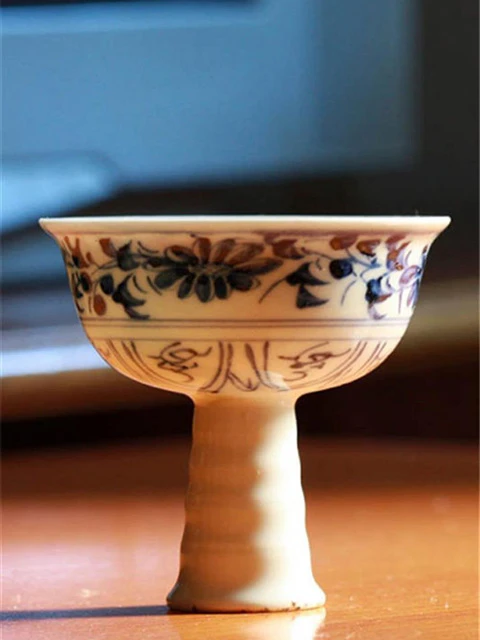 High-footed cup, though with early appearance, has only seen its popularity until the Yuan Dynasty. The Mongol nationality has realized the convenience of such cup with high stems when drinking on the horseback. This type of cup could be used on any occasion, from massive immigration to the feast for rewarding brave soldiers.