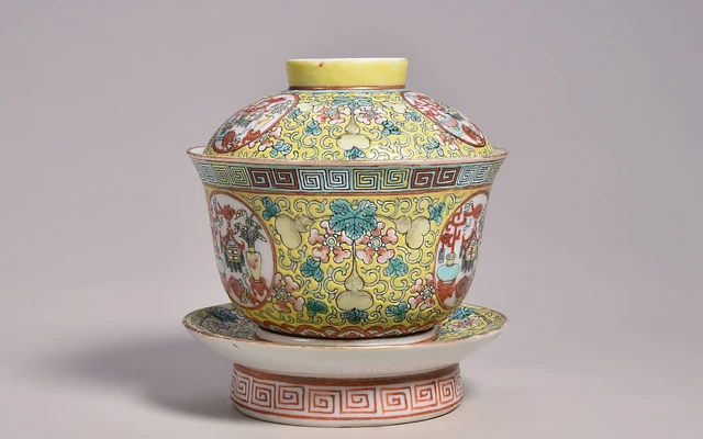 Comparing to other tea sets, the Gai Wan (盖碗) has won the majority of Qing people and become one of the features of the Qing tea set. Composed of lid, cup, and tray, the tureen is not only dust-proof, but also convenient with its outward rim and tray, which were designed for preventing burn of people’s fingers.
