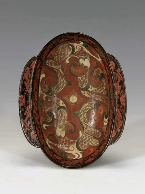 The teacup in this period was called “Shang (觞)”, an oval, shallow container with a flat bottom and half-moon shaped handles on both sides, which was also known as ear cup. There is a famous idiom about "Shang": Liu Shang Qu Shui (流觞曲水, winding stream party) from Lantingji Xu (兰亭集序, Preface to the Poems Collected from the Orchid Pavilion)
