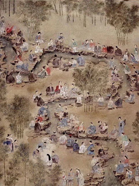 Mean that tea drinkers would sit by the river sides, and put the “Shang” with tea in it on the flow of the water. The teacup would go downstream and stop randomly at one of the drinkers, who, as was the rule, would drink the tea heartily, meaning to remove the infelicities.