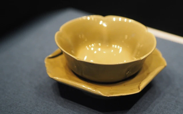 - The flower-bottlenecked containers usually have five flower-petal-shaped upper parts and five-melon-petal middle part. The bottom part of such containers is slightly outward. Among all the kilns that make Tea Ou, Yuezhou kiln is regarded as a high-end brand.