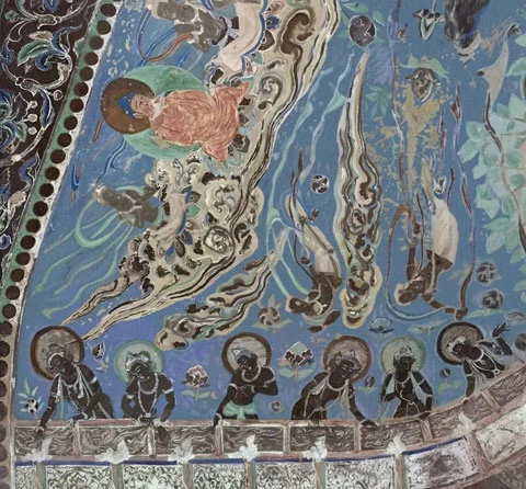 The tops and skirts of the Bodhisattvas in Dunhuang's 420 caves are sizzling with blue. It is as if the cracks in the walls are penetrated by the clear sky. This blue is pure and rich, sometimes embellished with gold stars, not like from the mortal world, very much like plucked from a long and mysterious sky.
