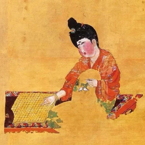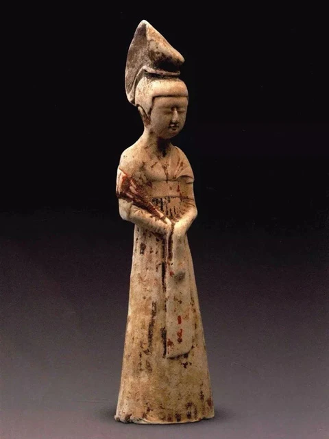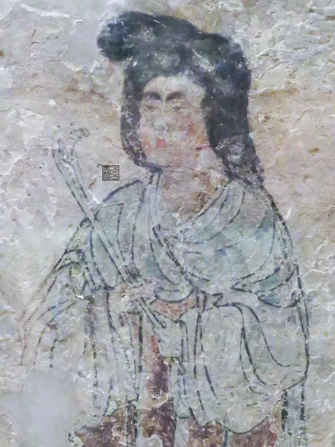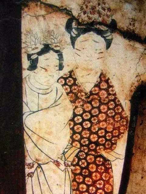 The forehead yellow makeup began in the Han Dynasty, became popular during the Sixteen Kingdoms period, and reached its heyday in the Sui and Tang Dynasties.