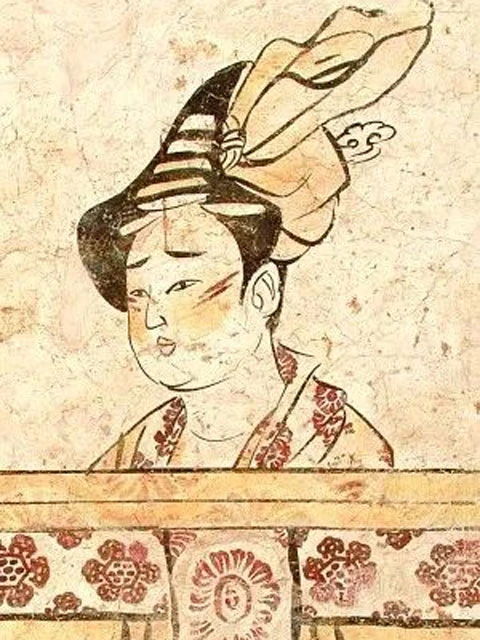 Moon-shaped Eyebrows: Slightly wider than willow eyebrows, they resemble the shape of a crescent moon. In Yan Liben's "Emperor Taizong Receiving the Tibetan Envoy," palace ladies all painted moon-shaped eyebrows.