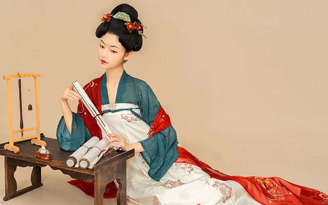 The colors of lipsticks were also very rich, including vermilion, and crimson. The shape of lip makeup was regarded as a cherry-shaped mouth as the best, appearing small and round. It reached its peak during the late Tang Dynasty.