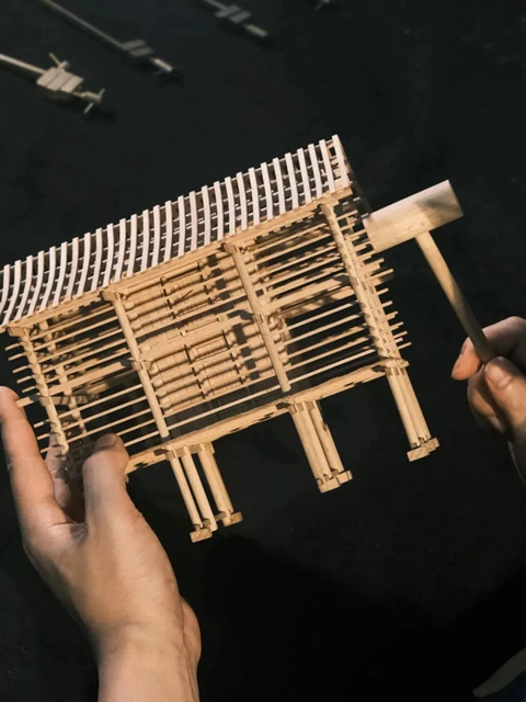 When developing ancient architectural models, Shi approached the design from the perspective of the assembler. He hoped that the model would not only be a mere construction, but also an object of communication with the experiencer. By using one's own hands to infuse life into the building, one can feel the wisdom of manual labor through touch. This is an incredibly soothing experience.