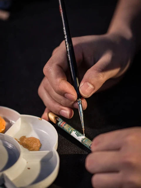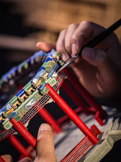 For an architecture to have an overall effect, the coordination of color is essential. While restoring the architectural structure, the color of the wooden model is an extremely important aspect. The coloring pigments are exclusively blended by Shi Rongmin to achieve the most authentic traditional hues.