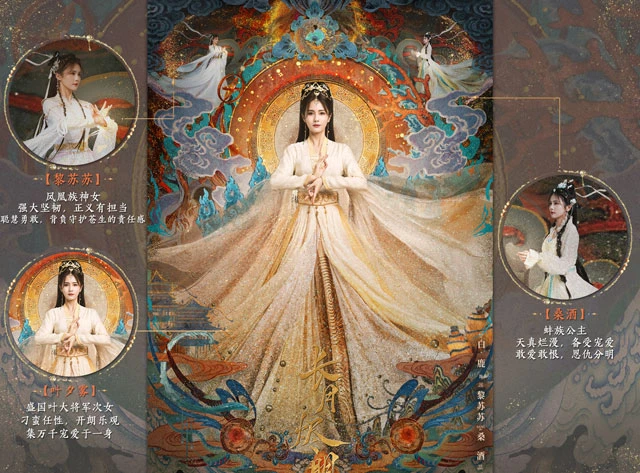 Deng Wei, who played Xiao Lin, Sun Zhen Ni, who played Pian Ran, and Geng Yeting, who played Ye Qingyu, drew inspiration from Dunhuang aesthetics in the creation of their respective posters.