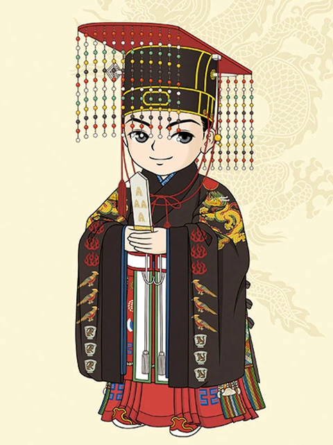 Its grandeur is second only to that of the Mian Fu, and similar in form, but with differences in the crown, patterns, and accessories depending on the level of ranking. The Bian Fu can also be used for ceremonies, but the occasions for wearing it differ based on one's level of ranking.