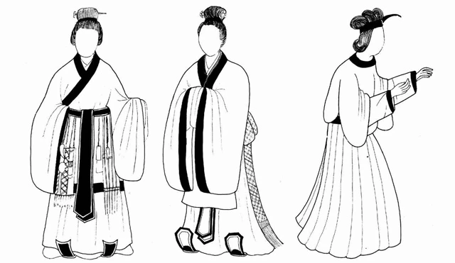 The clothing style during the Zhou Dynasty era consisted of top and bottom – the upper part being called “Yi”, which was slightly looser than the clothing during the Shang Dynasty and had two types of sleeves - long and short. The length of the Yi usually reached the knees and had narrow sleeves, a tight collar, and wide edges. It also had two styles of collars - straight and slanted. The lower part of the clothing was called “Shang”, which was worn down to the calves. The length of skirts or pants varied and could be either above or below the knee.