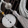 Additionally, the fan may feature tassels. In moon-shaped fans, a hole may be drilled at the end of the handle to attach various accessories, such as tassels, jade ornaments, beads, and more. The popular option is tassels. These accessories add decorative elements to the fan and enhance its aesthetic appeal.