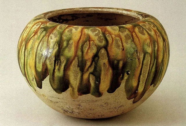 In making this type of pottery two firings are needed, the first being biscuit-firing while the second involves applying colored glaze onto the surface before undergoing another round of kiln-firing at 900℃, which produces finished tri-color glazed ceramics. Because its firing temperature is lower compared with typical porcelain products, it can be classified as a type of pottery instead.