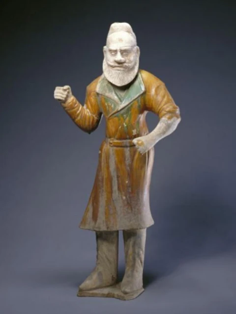 The "Hu" in the Tang figurines probably refers to the Sogdians from Sogdia. They were businessmen who came eastward during the 3rd and 8th centuries AD for trade. Some of them settled down in the Western Regions (today’s Xinjiang) and Central Plains, continuing their businesses or taking up agriculture. Some even became officials at central or local governments.
