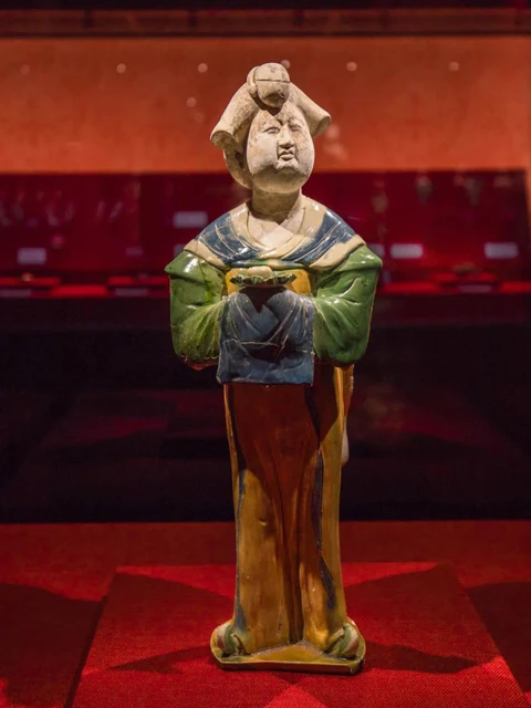 However, it wasn't until Wu Zetian's reign when larger-sized Tang Sancai started to appear. By then, consumption of Tang Sancai had already extended to a wide range of people, including royalty, officials at various levels, and even wealthy commoners. Influenced by the trend of lavish burials, production of Tang Sancai flourished and developed into exquisite works of art.