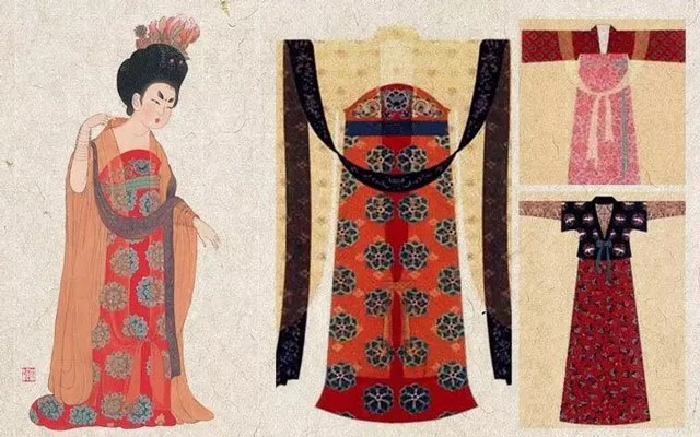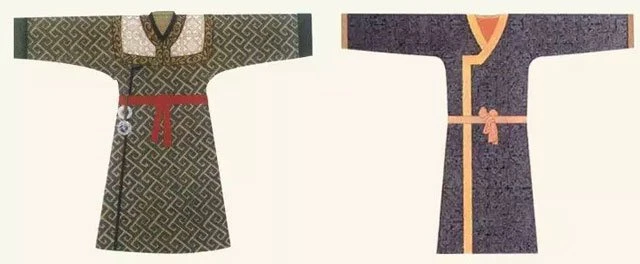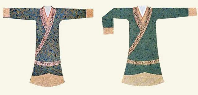 Because the top was "Jiaoling Youren (交领右衽: crossed collars and right overlapping part)", it looked like the Chinese word "又" in front of the chest and as a heart shape if several pieces of clothing were stacked on top of each other. This form of clothing continued into the Song and Ming dynasties.