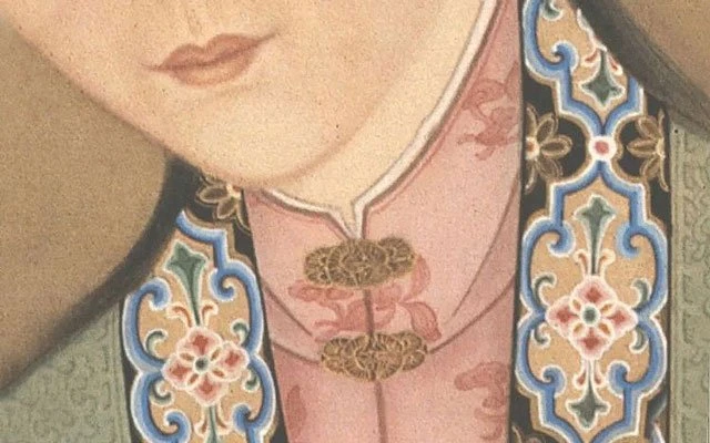 If you look closely at this portrait of Song Renzong, you'll notice a straight line on the chest, which is actually a sewing thread, stitching two pieces of clothing together. It is also found in modern clothes, but not in the middle of the garment. This line is called the "middle stitch". It is used to straighten and put on the garment properly when wearing it. It also warns us to walk upright, sit upright, and be impartial.