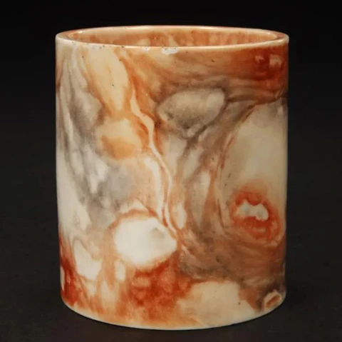 Both the inside and outside of this brush holder are covered with imitation stone glaze, perfectly capturing the texture of jade.