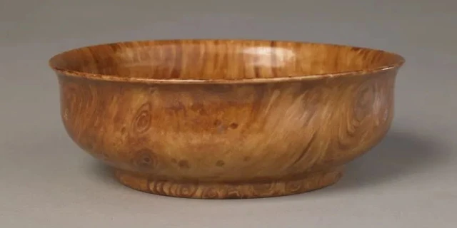 This bowl is the latter form with wood grain painted both inside and outside. The wood grain pattern is clear, and the glaze surface has a realistic texture.
