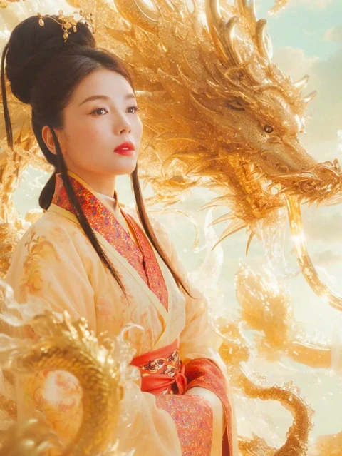 She wears a golden round crown on her head, a common hair accessory for Song Dynasty women. The makeup follows the unique pearl makeup of the Song Dynasty, fully showcasing the charm of the Song Dynasty.
