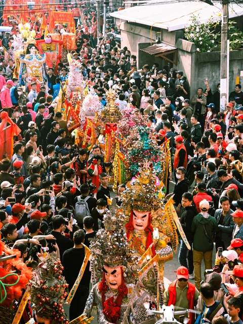 As night falls, the deities' hats adorned with flashing light bulbs will be turned on, illuminating the path. This luminous display is accompanied by fireworks, smoke bombs, and firecrackers. The generals will hold illuminating flares, contributing to the spectacle, while masks add an extra layer of mystery as the faces of the deities remain hidden behind thin wisps of smoke. This is the time where everyone this the hype of the parade is starting.