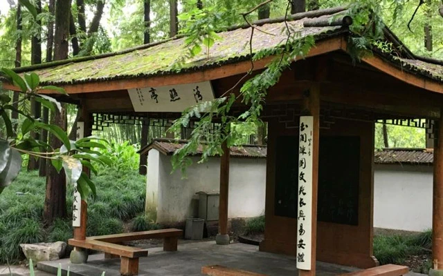 The entire pavilion is delicate and exquisite, showcasing the characteristics of Jiangnan gardens. Not far from the pavilion, spring water emerges from the ground. Next to the spring water, a square stone pool is built, into which the spring water flows before merging into a mountain stream. The temperature of this spring water remains relatively constant throughout the year, at around seventeen to eighteen degrees Celsius.
