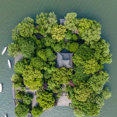 Huxin Pavilion is located in the center of the outer West Lake, on the smallest of the three islands in West Lake. Standing in the pavilion, looking around, one can take in the beauty of the lake and mountains. It is well known that a rainy West Lake is better than a sunny one, and a snowy West Lake is even more enchanting.